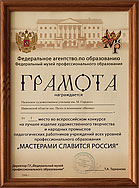 Грамота конкурса «Мастерами славится Росссия». Федеральный музей профессионального образования.