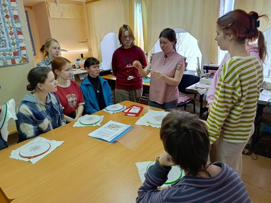 Куратор 1 курса Палехского художественного училища им. М. Горького Дмитрий Николаевич Карышев познакомил свой курс с удивительным местом в Палехе и с удивительным человеком. Среди первокурсников много приезжих ребят. Невозможно научить их палехскому искусству без знания истоков, без погружения в творческую среду Палеха. Путешествие в Палехский центр творчества и туризма - неслучайная затея. Центр расположен в историческом здании, построенном в 1864 году Софоновым Николаем Михайловичем, выдающимся русским художником, иконописцем и реставратором, Поставщиком Двора Его Императорского Величества. Он был основателем иконописной мастерской - самого крупного иконного предприятия Палеха в начале 19 века, а его иконописцы славились высочайшим художественным уровнем. Теперь в этом здании работают люди, которые на высоком уровне владеют народными ремёслами, сохраняют традиции и передают любовь к народному творчеству детям и взрослым. Любовь Владимировна Ляпина - методист Палехского центра творчества и туризма, обладатель большого числа наград за победы в конкурсах декоративно-прикладного творчества и выставках различных престижных профессиональных уровней, обладатель звания «Народный мастер Ивановской области», лауреат премии "Лучшая многодетная мать района", а главное - мама нашей студентки. Мамы - они такие! Волновалась перед встречей со студентами, готовилась для проведения экскурсии, по ночам делала заготовки салфеток, чтобы хватило всем на мастер-классе, а потом...удивила, влюбила в лоскутное шитьё и палехскую строчевую вышивку - гордость и достояние палешан. Наши студентки остались под большим впечатлением от встречи! Их мамы тоже будут рады, так как на мастер-классе девочки изготовили для них подарок. Благодарим Палехский центр творчества и туризма за гостеприимство и проведение полезного занятия для подрастающего поколения художников! Благодарим Любовь Владимировну за интересную встречу, которая непременно запомнится и вдохновит наших студенток!