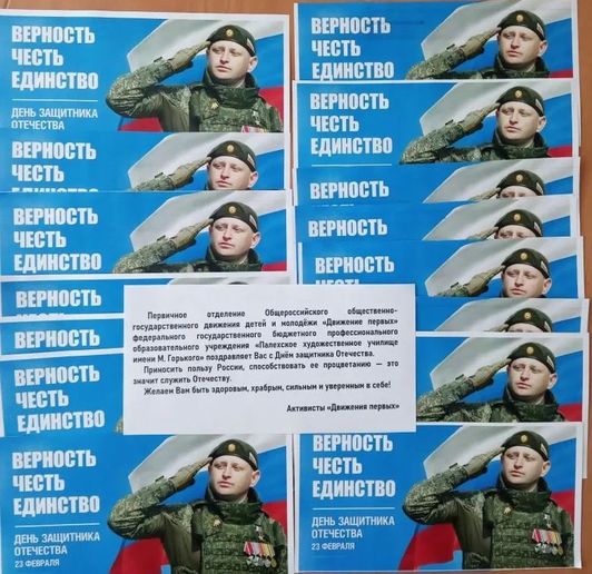 Первичная организация "Движение первых" Палехского художественного училища им. М. Горького подготовила поздравительные открытки "С Днём защитника Отечества!". Ульяна Герцева, заместитель председателя Первички, торжественно вручила открытки представителям мужской части коллектива:- нашей настоящей опоре и будущим защитникам Отечества: сотрудникам, студентам училища и учащимся Детской художественной школы.